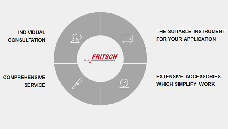 Na FRITSCH encontra tudo o que precisa e da mesma fonte para moagem, crivagem, divisão e medição :