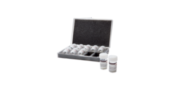 Box with FRITSCH-test powder F-500 for 0.5 - 50 μm (50 g), 3 single-shots test powder 10 - 100 μm (0.5 g), 3 single-shots test suspension nano (approx. 200 nm) for system check (5 ml), 3 single-shots test suspension1 μm for system check (5 ml), 3 single-shots test suspension 10 μm for system check (5 ml).
