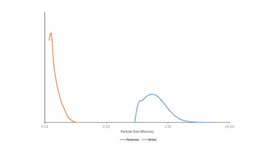 We have been working with Fritsch’s Pulversette line of micromills for the past couple of years to develop much smaller and more uniform particles, as these micromills are capable of ultrafine grinding results down into the nanometer particle size range (Figure 1). The laboratorysize mills use smaller, very hard media to achieve extraordinary milling energy.
