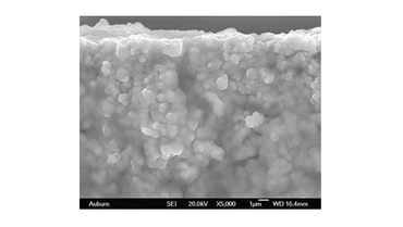 Our ultracapacitor development has focused on optimizing dielectric properties of perovskite ceramic powders for ultrahigh permittivity, low dielectric loss, and high dielectric breakdown. The resultant materials can be used as solid-state energy storage devices to replace electrochemical batteries, and they can be used as very high-voltage triggers for propulsion systems. We have been developing processes to increase grain boundary characteristics of these materials to store charge and to significantly increase sintered density of the devices. The ability to micromill ceramic particles into low nanometer particle sizes, with corresponding improvement of D10 to D90 particle size distribution and particle distribution curve (Figure 2), has allowed us to optimize these processes, resulting in ultracapacitor devices with good sintered density resulting from the uniform particle size (Figure 3).