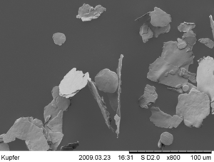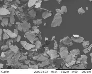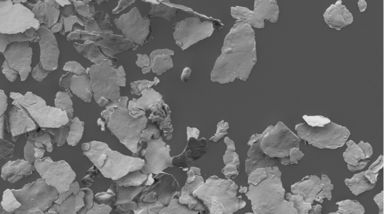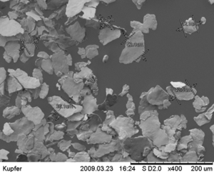 This can be easily discerned in the following images which were obtained with an electron microscope. With a platelet thickness of ~2 µm. the measurement in longitudinal respectively cross direction is approximately 20 - 40 µm.