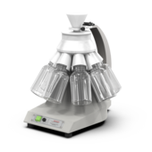 If a sieving of 0.5 mm is desired, then most materials can only be prepared with a combination of the cutting mill with the cyclone separator. The cyclone separator generates an air current. It downright draws the materials from the funnel, and acts as a coolant during the comminution and fosters the movement of the material and therefore the passing through the sieve. The finished prepared sample is removed through the cyclone separator into a sample glass.