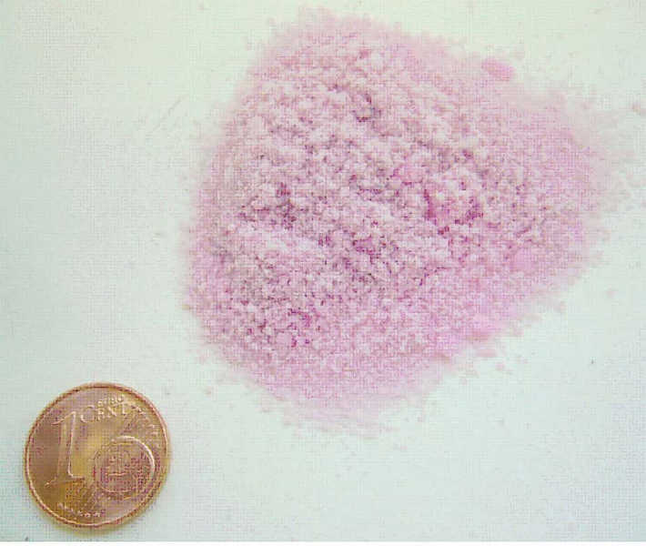 Derived from this difficulty the task was drafted, to comminute a sample of a “scented toy horse” in such a manner so that a powder evolves. The scents can not be lost though. Scents are relatively slightly elusive in order to be smelled. Therefore it has to be assumed that with the amplification of the surface, a faster transition into the ambient air occurs. Therefore the substances would elude analysis. In order to avoid this to the greatest possible extend, the sample was comminuted during permanent cooling with liquid nitrogen.