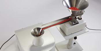 Vibratory Feeder LABORETTE 24 with V-shaped channel, funnel and control unit for 200-240 V/1~, 50-60 Hz, 25 Watt.