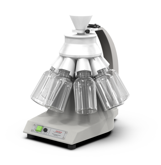 The LABORETTE 24 is the perfect accessory for the combination with the FRITSCH Rotary Cone Sample Divider LABORETTE 27, the FRITSCH Rotor Mill P-14 premium line and Variable Speed Rotor Mill PULVERISETTE 14 classic line with automatic control of the channel vibration via the integrated interface – for perfect results and reliable reproducibility!