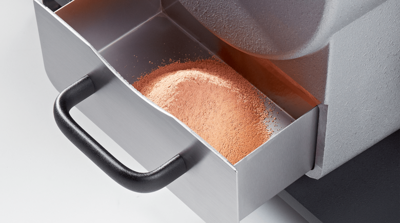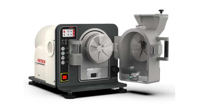 In the Disk Mill, the material to be ground is comminuted by pressure and shearing action between two counteracting grinding disks with coarse interlocking teeth. The ground material automatically falls down through the pre-set grinding gap into the collection drawer. The desired final fineness can be defined reproducibly by simply adjusting the digital setting of the gap width.