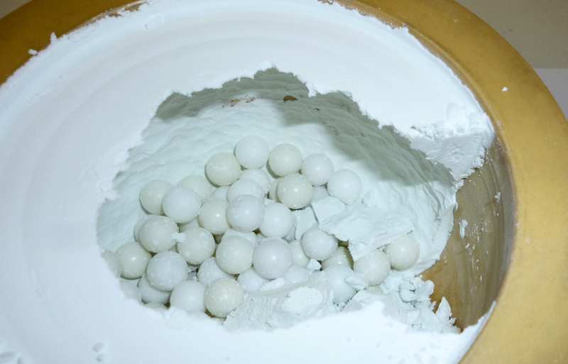 | We recommend using the Planetary Mill PULVERISETTE 5 classic line with bowls and balls made of zirconium oxide to avoid discoloration. To achieve desired fineness, a grinding in suspension is required. |