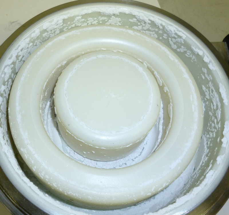 | Pictures: | Light sticking of sample after 2 minutes of dry grinding; mainly on the bowls wall. |