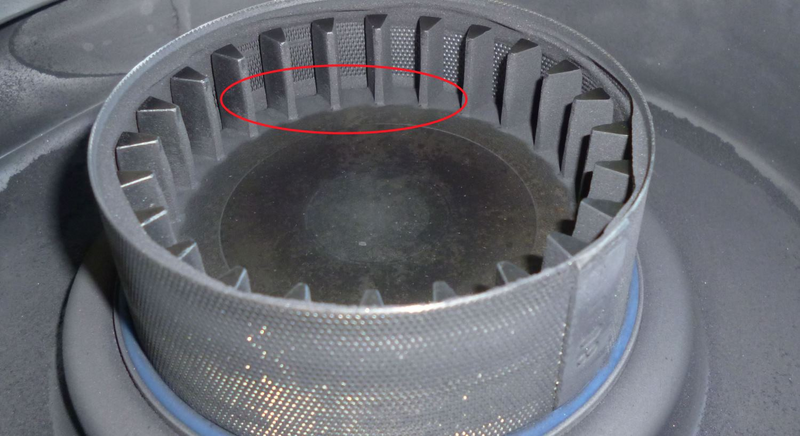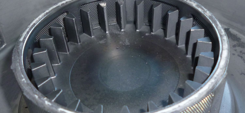 After only 20 seconds of grinding, grinding sound indicated that the openings of the sieve cassette use to be blocked. Also the airflow which uses to be provided by the cyclone separator is significantly reduced.