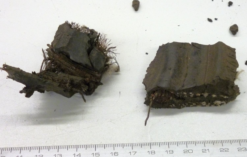 | Pictures: | Two pieces with high metal content. Right piece use to show a cable with ~ 1cm Ø. It is recommended pre cutting the sample with e.g. a side cutter. |