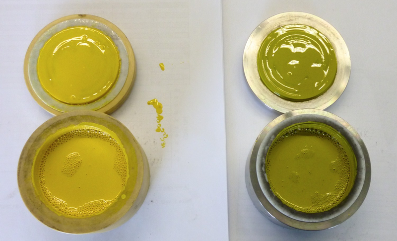 Usually we recommend mixing the pigment with the proper amount of sample to achieve motor oil like viscosity (for an optimum grinding result). In this case, the sample is already mixed with the solvent. We mixed the slurry as good as possible before starting the grinding trial.