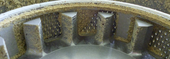 | Pictures: | Only a bit of sample uses to stick at the top of the used sieve ring (where it uses to touch the lid). The rotors ribs does not reach that high – so we expect that a grinding of higher amounts still should be possible. |