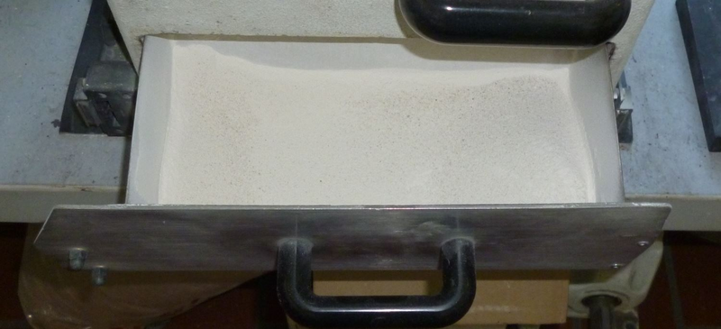 | Collecting vessel after a grinding of ~ 365 g of sample. |