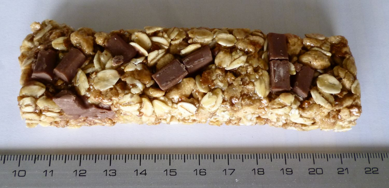Half of a Nestle musli bar has been cut into small pieces and has been placed into a freezer at -16 °C over night. Next morning, the frozen pieces have been fed to the Variable Speed Rotor Mill PULVERISETTE 14, using a 1,0 mm sieve ring instead of the 2,0 mm sieve ring.