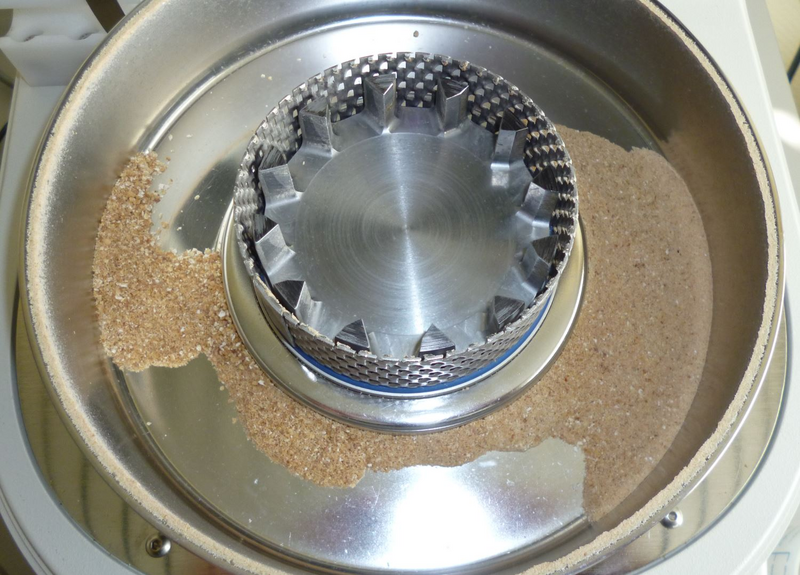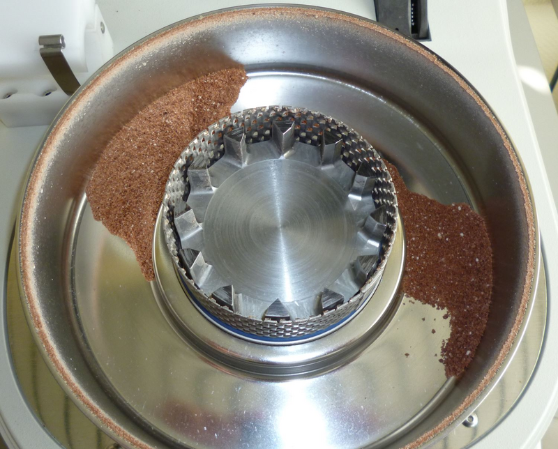 Grinding has been done within 12 seconds. The sample has been ground to a fine, homogenous powder which uses to stick lightly to the collecting pan. Only small amounts of sample use to stick to the rotors ribs. We are guessing that 50 g of sample might be grindable in one batch.