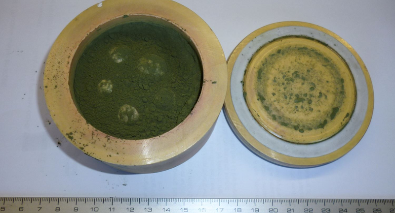 | Pictures: | After 1 minute of grinding, the sample is sticking lightly to bowl and grinding balls. A longer dry grinding is not recommended. |
