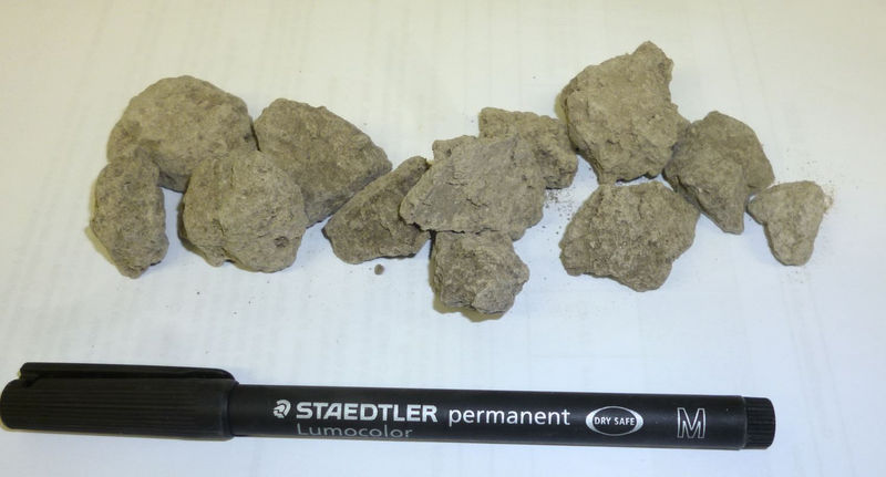 Start size of clay; also a comminution inside the feeding funnel (with a chisel or a screw driver) is possible. |