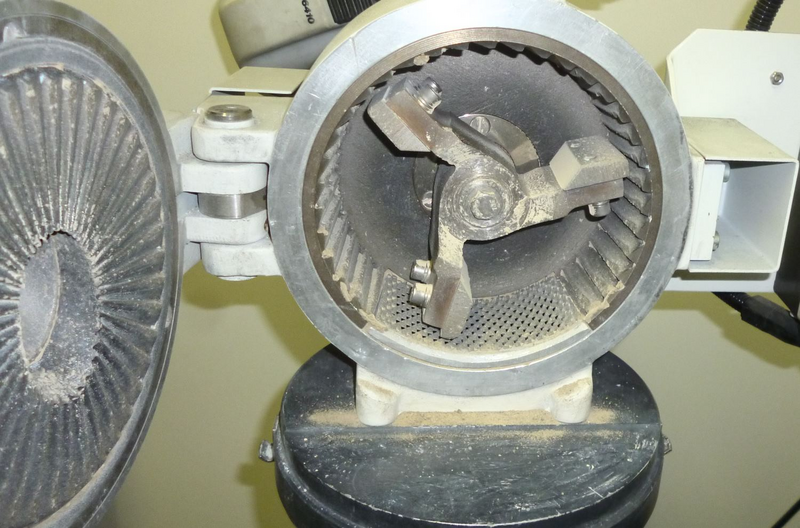 | Desired amounts of sample can be ground with several machines. We recommend using a Cross Beater Mill PULVERISETTE 16. Also a planetary mill can be used for a comminution of such sample amounts. |