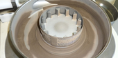 Eventually, for a grinding of higher amounts of sample, it might be necessary to interrupt the grinding process for a cleaning step, if electrostatic charged sample will stick stronger to the sieve ring.