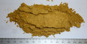 | Es scheint sich um Blüten und Samen von einem Sanddorn-ähnlichen Gewächs zu handeln. Es finden sich orange-gelbe Blüten (trocken), sowie Samen mit bis zu 3 mm Länge in der Probe. | |