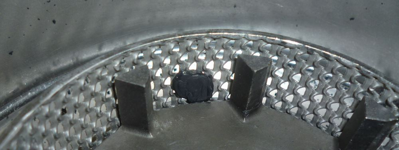 Within 30 seconds, the complete sample got fed and ground. Grinding sound stopped immediately. Only a very small amount of sample has been found afterwards, lying loose on top of the sieve insert.