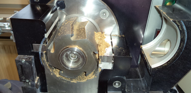 Pre ground pieces of sample get compressed, mainly in front of the second fixed knife. We are guessing that about 70-80 g of sample might be fed to achieve an output of 50 grams as desired. Possibly, one cleaning step might be required to free fixed knives from residues.