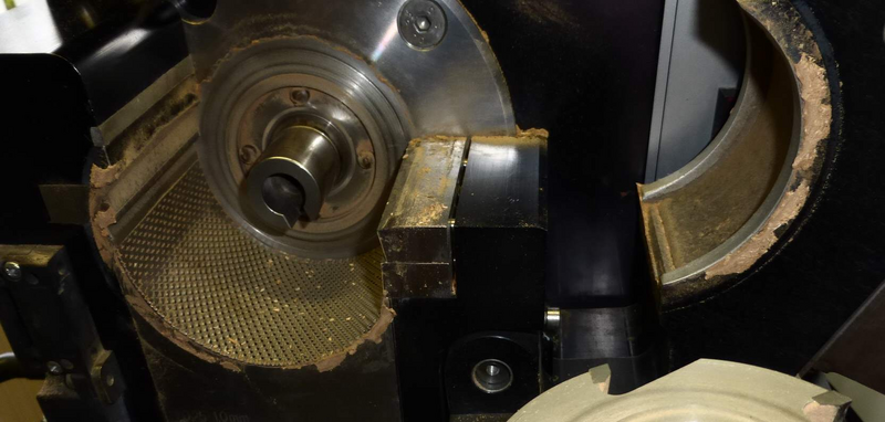 Opened grinding chamber after 500 grams of sample got comminuted. Only a minimal residue uses to be left in the grinding chamber. |