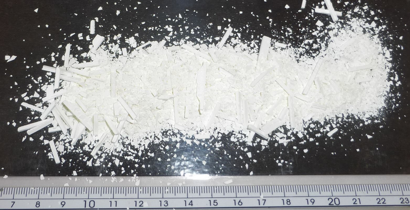 | Pictures: | Sample before grinding. Some pieces up to 2,5 cm can be found. |