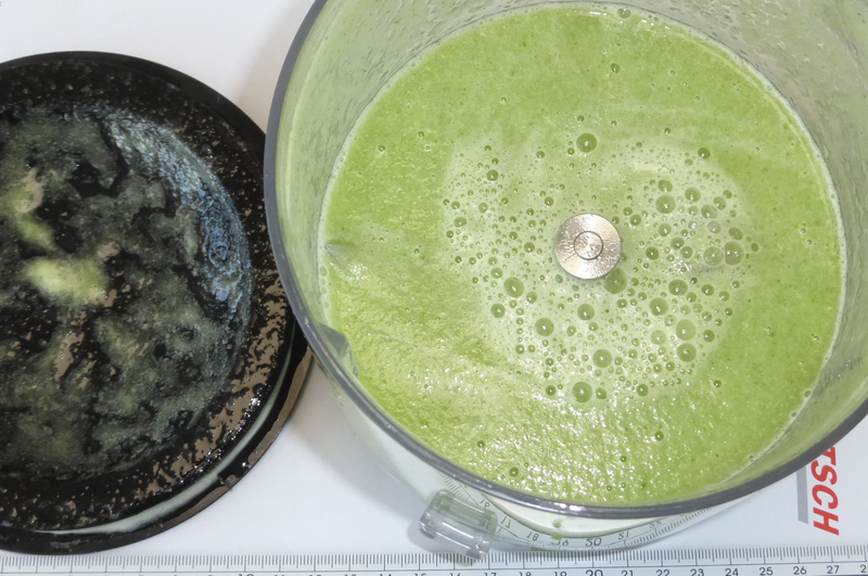 After 60 seconds of grinding, the complete cucumber was ground to a homogenous green, thin viscous mass. We don’t expect that the fineness would improve any further when a longer grinding time would be applied.