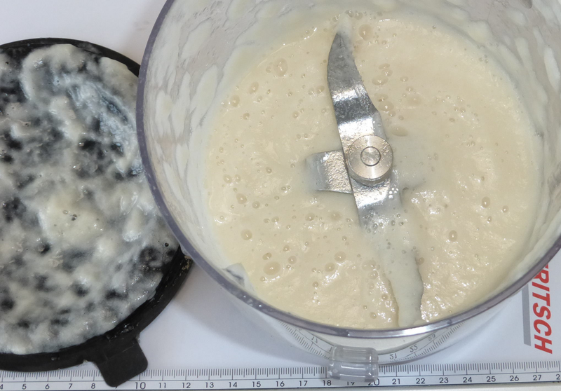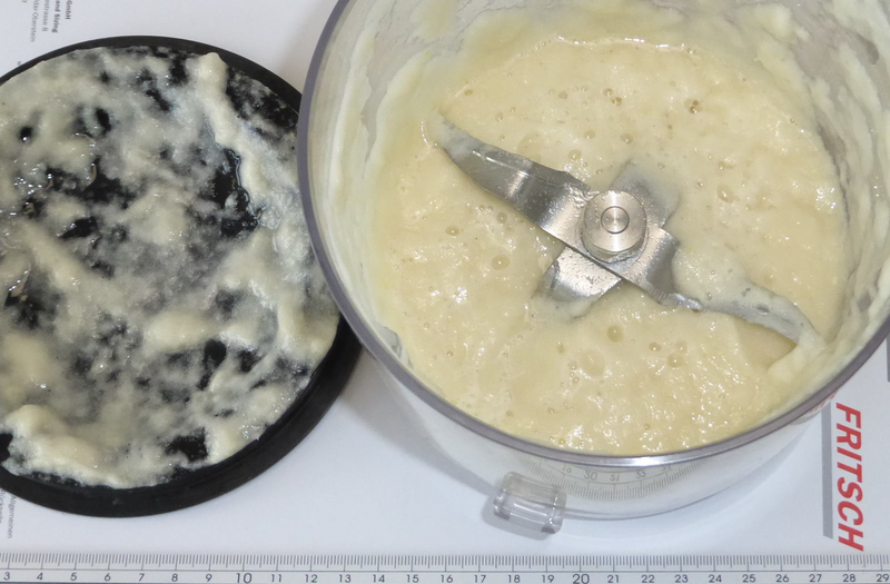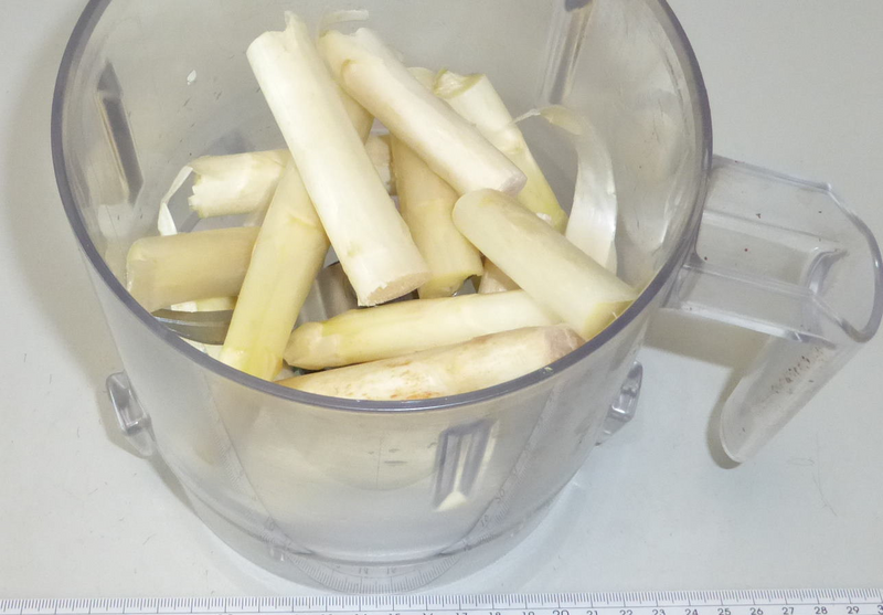 | After 15 seconds, the asparagus was ground to a coarse mush. Only a few fibers up to ~ 10 mm length were spotted. |