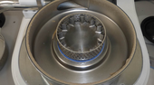 | Pictures: | Opened grinding chamber after comminution of 150 g pre cut cricket sample. A lot of fine ground sample was brushed into the cyclone. |
