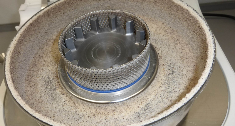 | Opened grinding chamber after a grinding time of 60 seconds. A larger sample amount can be ground in this manner also. |