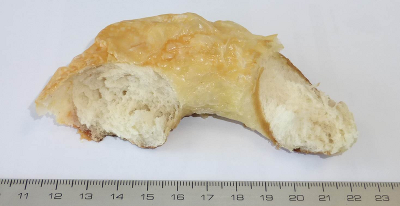 | Pictures: | Original piece of “Mohnschnecke”, before sample was precut, embrittled and ground. |