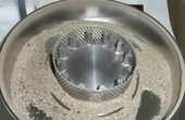 After one minute, the entire sample was comminuted successfully. No significant residues were left on rotor or sieve ring. Even a 1,0 mm sieve ring can be used to comminute the sample as shown, with accessories for grinding large quantities in one batch. |