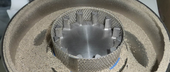 | Pictures: | Without previous embrittlement of sample, a 1 mm sieve ring starts to clog with sample at lower and top sides. Still higher amounts of sample might be grindable. We cannot estimate after how many grams of sample a cleaning step is required. Most likely, it should be possible to grind about 50 grams at once. |