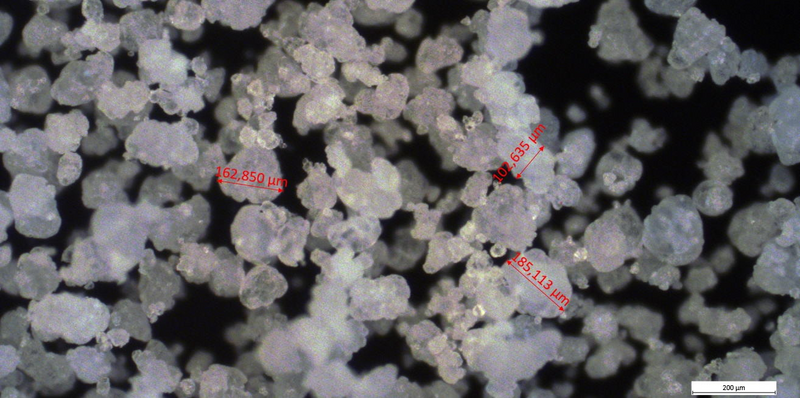 We used a batch of 40 grams of HDPE and checked the level of fineness by optical microscopy. We found plenty of fragments around 200 µm length or width; only a few larger pieces < 400 µm were spotted.