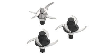 The standard knife made of stainless steel can be used for comminution of nearly all materials due to its four blades and a well-conceived geometry. For comminution of especially fibrous, tough or sinewy samples, we recommend the knife with serrated blades made of stainless steel.