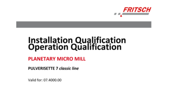 IQ/OQ documentation for the independent utilization for the support of instrument qualification in the quality management system for the Planetary Micro Mill PULVERISETTE 7 classic line.